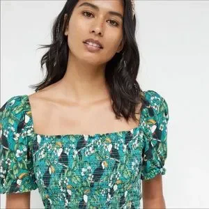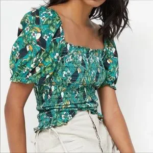 Anthro DOLAN Smocked Puff-Sleeved Toucan Top S