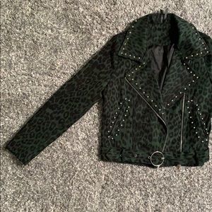 Nasty Gal Leopard Moto Jacket with Studs