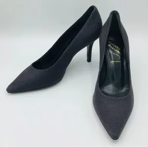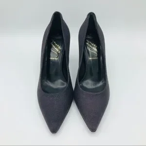 Very deep purple leather w reptile embossing. Very timeless silhouette with a 3" heel. These are new in box. Very elegant.