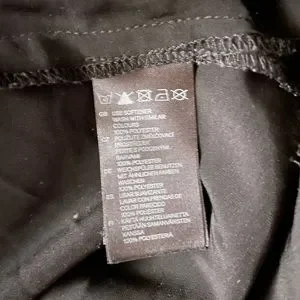 Black acetate (silk feeling) blouse with bright pink interior piping details. Body skimming fit (gorgeous!) with rounded hem and keyhole back with loop and button. H&M size 8. Lovely!