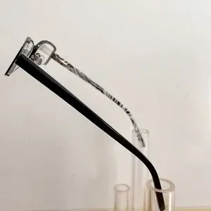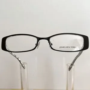 Beautiful, sleek, ladies eyeglass frame frame. Front is black finish with spring hinge acetate temples.