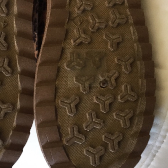 Look like Ug gs brown leopard print, with faux fur lining, and side button detail. Calf is 7” lying flat, 10” tall. These are so cute! And they are the last pair.