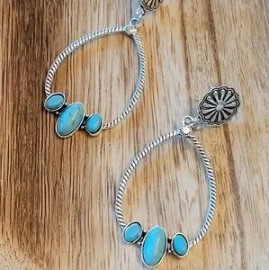 Three-Stone Turquoise Howlite Concho Twist Drop Dangle Earring, cowgirl chic