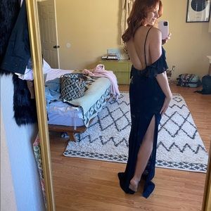 Dresses that are sexy, comfortable, and that you'll actually wear again. This is a floor length dress with a cold shoulder, a very high slit, and an open back.