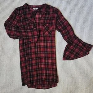 I wish I could keep this dress because it is sooo cute and trendy with converse or over the knee boots! However it doesn't fit me anymore. Very small tear in the back of arm. Not noticeable.