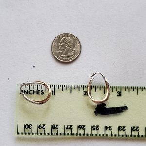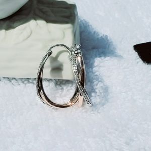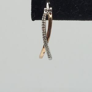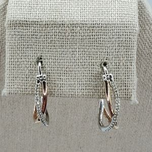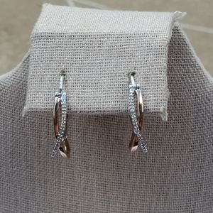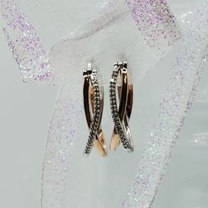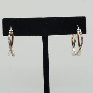 10K Rose Gold and Sterling Silver Pave Diamond Crossover Hoops