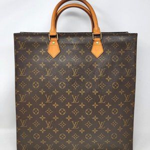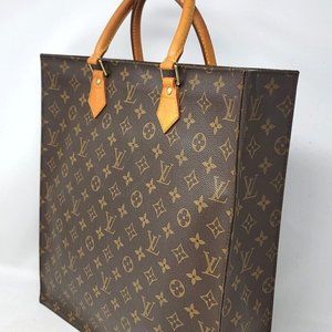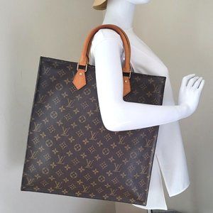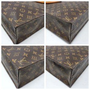 Louis Vuitton Sac Plat Monogram Canvas Leather Large Tote Bag Authentic MI0041
