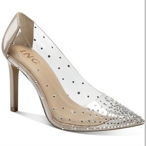 Rhinestones dot translucent vinyl for an ombré effect in the gorgeous stiletto lift of the Katey pumps from INC International Concepts®.