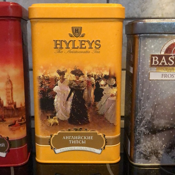 Collection of tea metal tins