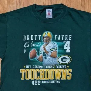 NFL Brett Farve Quarterback Record Shirt Green Bay Packers Large Men's Football