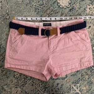 Superdry red white stripe shorts with belt