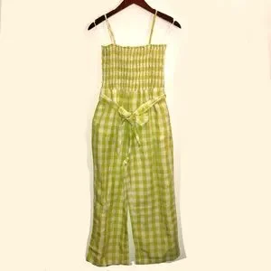 NWT HOUSE OF HARLOW 1960 LINEN SMOCKED GINGHAM JUMPSUIT (SIZE SMALL)
