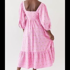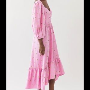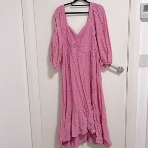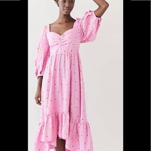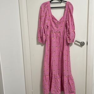 Farm Rio Pink Maxi Dress with Embroidered Pineapples. Puff Sleeves +Ruffle skirt in great condition. Worn once for an event.