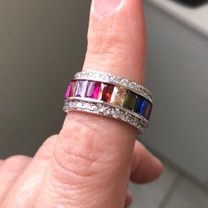NEW Size 6 Multicoloured Rhodium Plated Rainbow Ring - Absolutely Stunning!