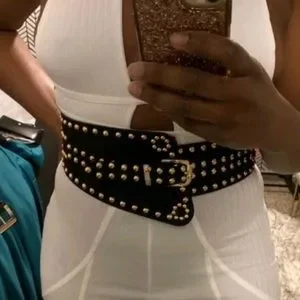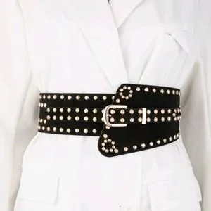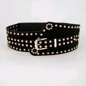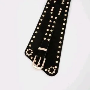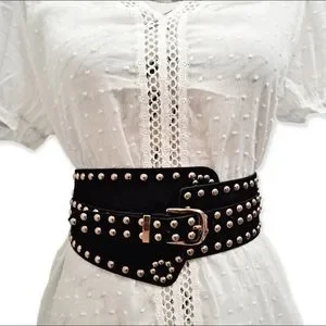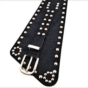 Wide faux vegan leather suede gold studs punk rivet cinch waist elegant belt, new