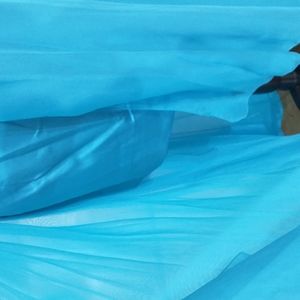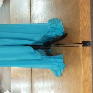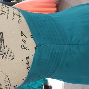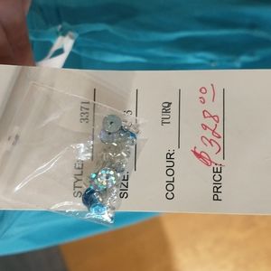 strapless pleated top with sequin bodest and a gem cluster in the center a subtle high low double tull skirt with a short dress on under the tull. comes with straps