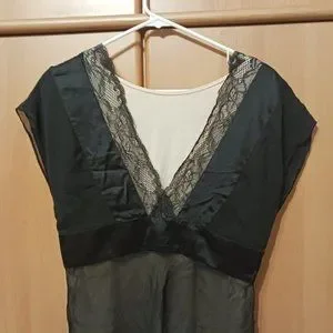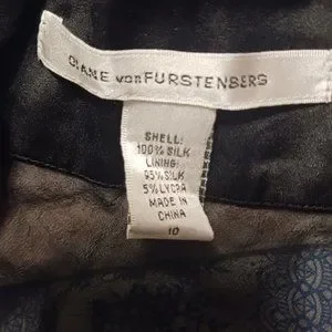 Diane von Furstenberg Black Silk V-neck sheer lace embellished blouse Sz 10 used