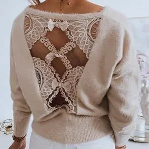 Lace V-Neck Casual Sweater