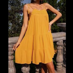 NEW Lightweight Cotton Cami Mustard Dress Spaghetti Straps Ruffle Hem Summer