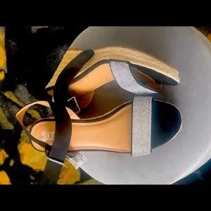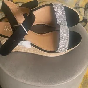 Faux Diamond Studded Wedged Sandals