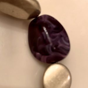 Costume stone stretchy bracelet has several colors; purple, brown, bluish/green, gold. Stretchy bracelet is in great condition