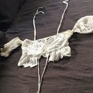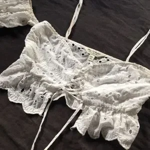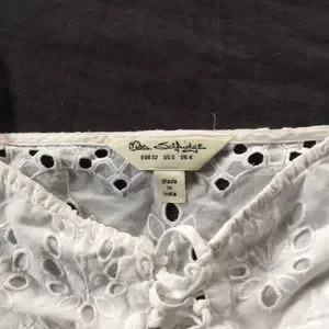 White. Adorable top. Good condition, tiny stain shown in last pic.