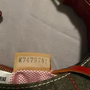 Dooney and Bourke Brown with Red Trim Canvas Bucket Bag