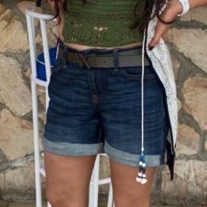Denim shorts with slight stretch. True to size. Very good condition. Used a couple of times.