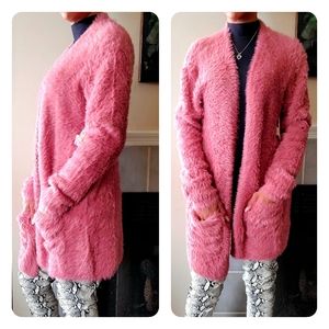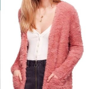 Free People Dusty Rose Oversized Long Sleeve Faux Fur Cardi with Two Front Pockets