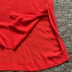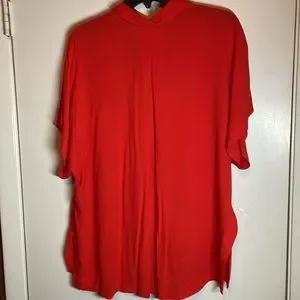 Women, Size 4, red/orange shirt, button down; drop shoulder, size split.