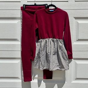 Gently used size XL girl’s sweatshirt and pants sets. Cute checkered pattern and vibrant red and yellow colors.