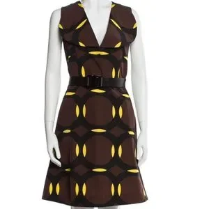 This is a fabulous find! I bought it NWT and only wore it once. It comes with the belt. Italian size 42, which is about US 6. See measurements in the pictures. It looks like it needs a stitch by the front neckline but this is how I bought it so I'm not sure... I've included the last two pictures to show what I mean.