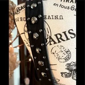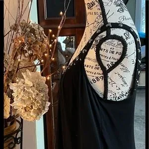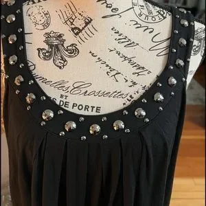 S O L D ❗️💎GORGEOUS Jet Black Blousy EXPRESS Top Black Bejeweled Straps/Neck -M