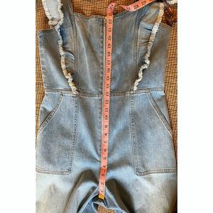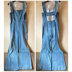 Alice + Olivia Gorgeous Wide Leg Open Back Denim Jeans Jumpsuit
