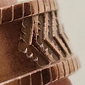 This large oval ring was likely made a while ago (1960-70's). The bluish background stone is faux, I believe, but the Biwa pearl appears to be real. The ring is silver but imo not sterling. The ring is adjustable.