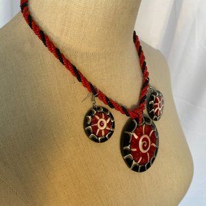 💰 5 FOR $40 / VINTAGE RED & BLACK BEADED "SEASHELL" NECKLACE AND EARRINGS (VGUC)