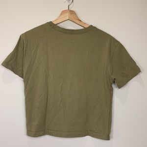 LIFE IS GOOD. Give bees a chance olive crop top