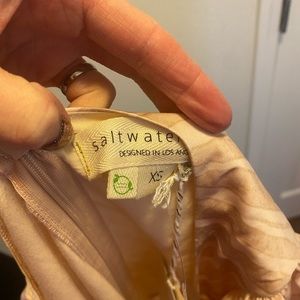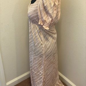 2 FOR $25 Saltwater Luxe Satin Midi Dress Puff Sleeve Ruffled Sand Size XS NEW