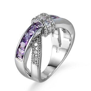 "925 Silver Plated Antique Purple CZ Punk Party Cocktail Ring, GPMB1401