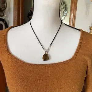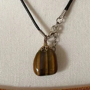Vintage Tiger Eye , pre-1985, Replaced original chain with New 18" Black Waxed Necklace Cord with lobster claw clasp.”