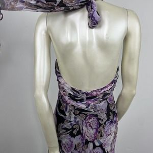 Diane Von Furstenberg Silk Dress Women's 8 Black/purple Floral Halter Open Back, pullover style.