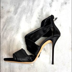 Casadei Satin Heel Stiletto Sandal with zipper back