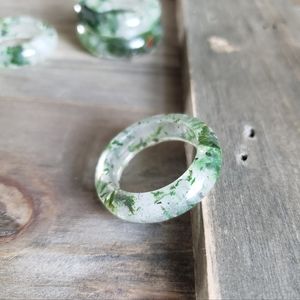 Moss Agate Resin Ring- Green Moss Resin Jewelry- Resin Rings- Dried Moss- Moss
