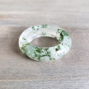 Beautiful smoothed resin band ring with real green moss. **Please note that every ring is handmade, and will vary slightly in moss/color ratio.***