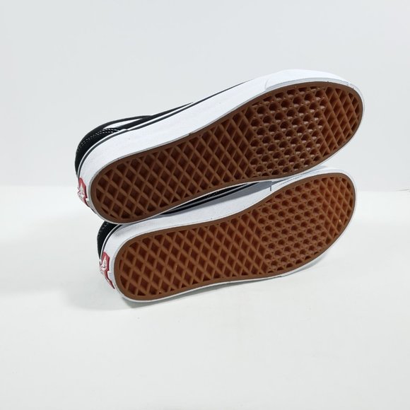 Vans Old Skool Black & White Skate Shoes Unisex Brand new Excellent condition Womens size 8 Mens size 6.5 Watch these fresh Vans Old Skool Skate Shoes quickly become your favorite kicks thanks to a timeless style. A black combo suede and canvas upper embelished with a white Vans 'wave' provides durability plus a classic Vans waffle tread so your board sticks to your feet like syrup. Provide your feet ultimate comfort and OG flair with the Old Skool skate shoes from Vans. Old Skool Black and White Skate Shoes from Vans. Suede and canvas upper. Lace up closure with reinforced metal eyelets. Lightly padded tongue and leather lined collar. Vans cushioned insole for impact support. White leather side logos. Vulcanized shoe construction for optimal board feel. Vans' signature waffle-tread rubber outsole for grip. True to size