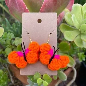 ๐HP๐Handmade Crochet Hot Pink & Neon Orange Butterfly Earrings