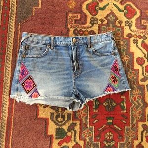 ✨Free People✨ denim shorts with cute patch details