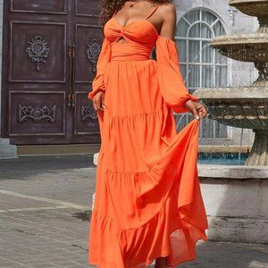 TANGERINE CUT OUT COLD SHOULDER LAYER MAXI DRESS