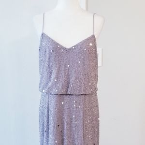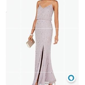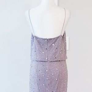 Adrianna Papell Lilac Gray Sequin Beaded long Dress