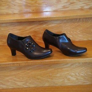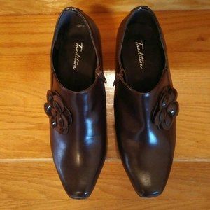 FLASH SALE! NWT Espresso Faux Leather Ankle Boots, Floral Adornment, 8M